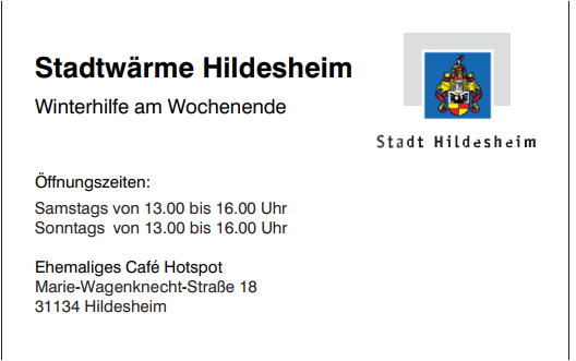 E-Mail-Kontakt: Wohnungslosenhilfe@stadt-hildesheim.de